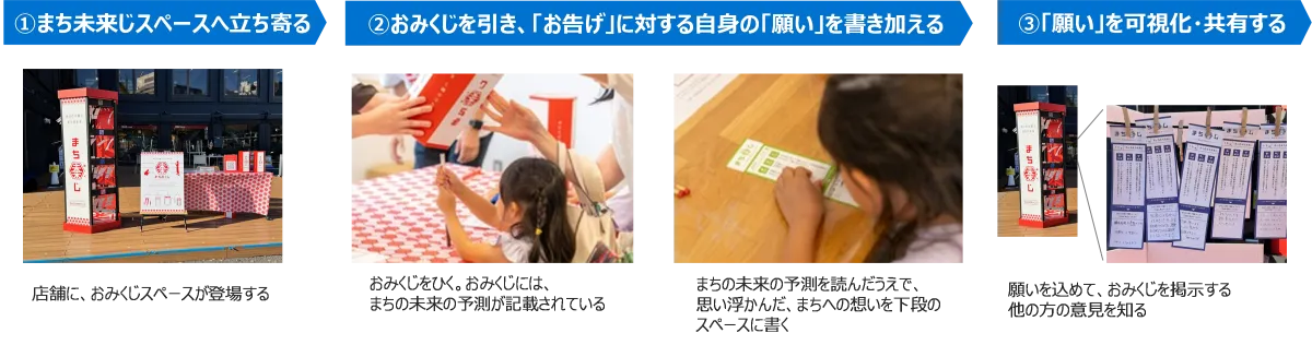 「おみくじ」は、公共の場で市民が手軽に参加できる手段で、感想や意見を共有しやすくする。商業施設での開催により、より多くの市民が気軽に訪れ、参加することが期待されている。