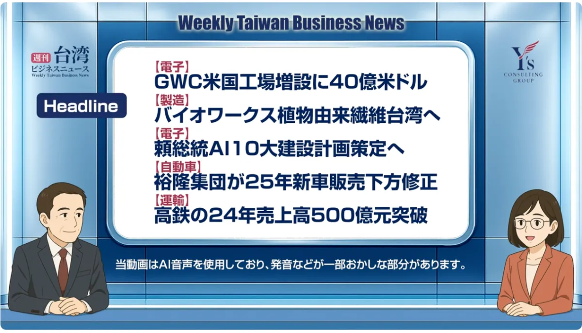 台湾に特化した情報サービス企業グループ、ワイズコンサルティングが新たにYouTubeで「週刊台湾ビジネスニュース」という番組を開始しました。この番組は、台湾の経済や産業に関する最新情報を効率的にキャッチアップできる内容となっており、毎週月曜日の正午に配信されます。