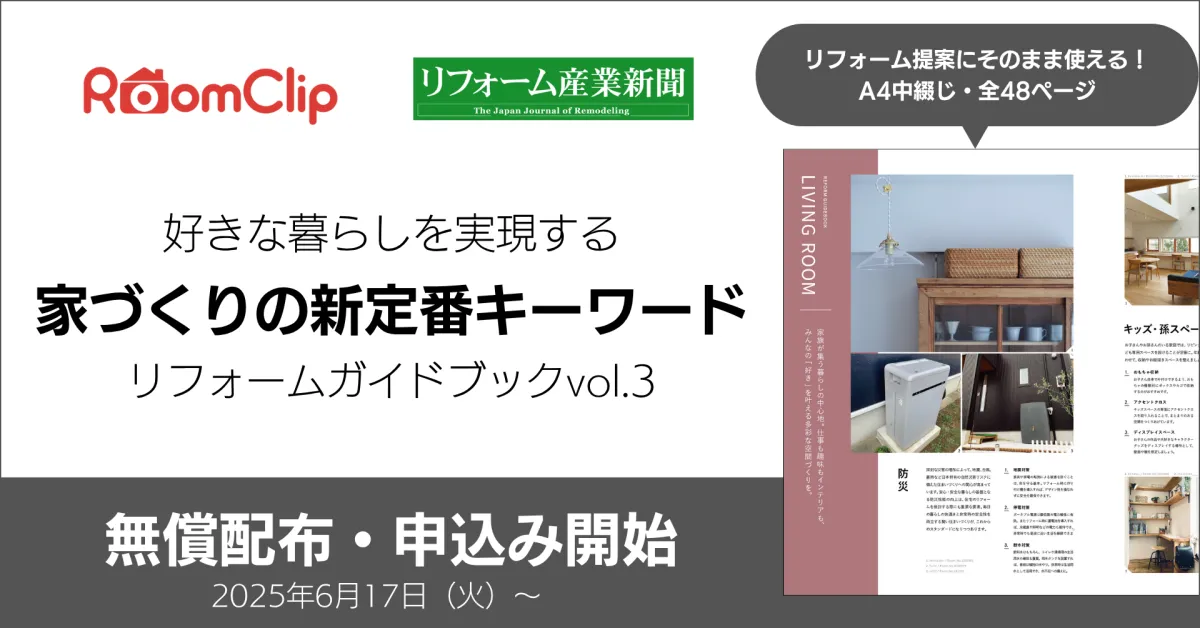 ルームクリップ株式会社(東京都渋谷区、CEO: 髙重正彦)は、リフォーム産業新聞(東京都中央区、社長: 加覧光次郎)との協力により、新たな冊子「家づくりの新定番キーワード リフォームガイドブック vol.3」の発行を決定しました。この冊子は2025年9月1日にリリースされ、リフォーム業界に新たな風を吹き込むことを目指しています。