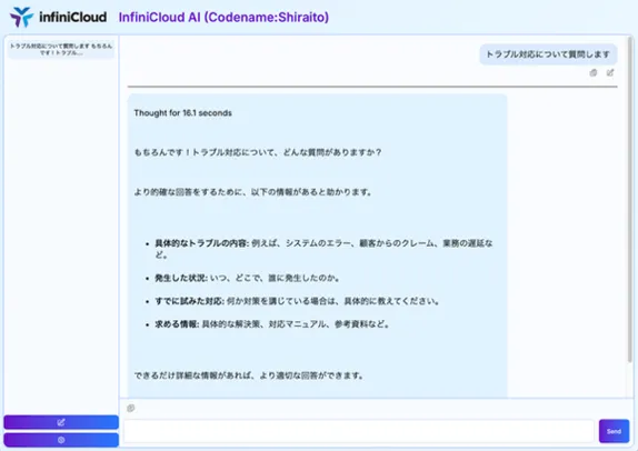 InfiniCloudは、プライベートクラウドサービス「High Response Private Cloud」を基盤にしており、インフラ最適化技術に強みをもっています。自社開発したWIKIベースのCMS「WIKIPLUS」を経て、Markdown形式で適した学習データ生成技術も蓄積しています。これらを融合させ、「InfiniCloud AI Appliance」として、ユーザーのビジネスに即座に活用可能なフルスタックAIソリューションを提供します。
