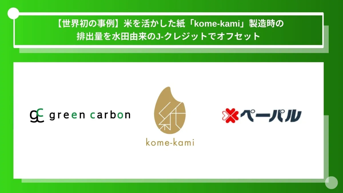 最近、グリーンカーボン株式会社と奈良に拠点を持つ老舗の製紙会社ペーパルの連携により、環境配慮型の新たな紙製品「kome-kami」が誕生しました。この商品の製造過程で発生するCO2を、水田由来のJ-クレジットを用いてオフセットすることに成功し、実質的に排出量がゼロとなったのです。