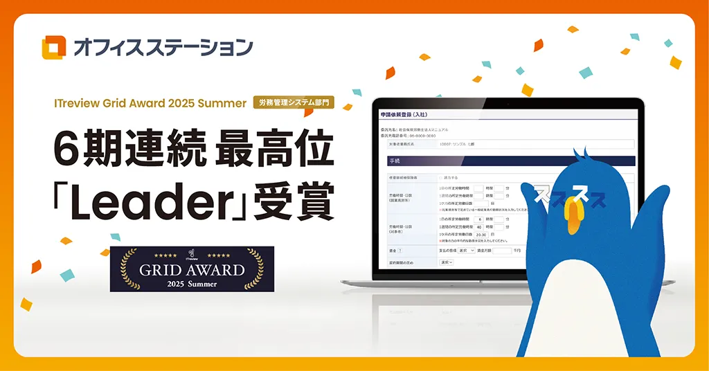 株式会社エフアンドエムが手掛けるアラカルト型人事労務クラウドソフト「オフィスステーション 労務」が、ITreview Grid Award 2025 Summerの労務管理システム部門において最高位の「Leader」を受賞しました。これにより、同製品は6期連続でこの栄誉を獲得し、その信頼性と満足度の高さを証明しています。
