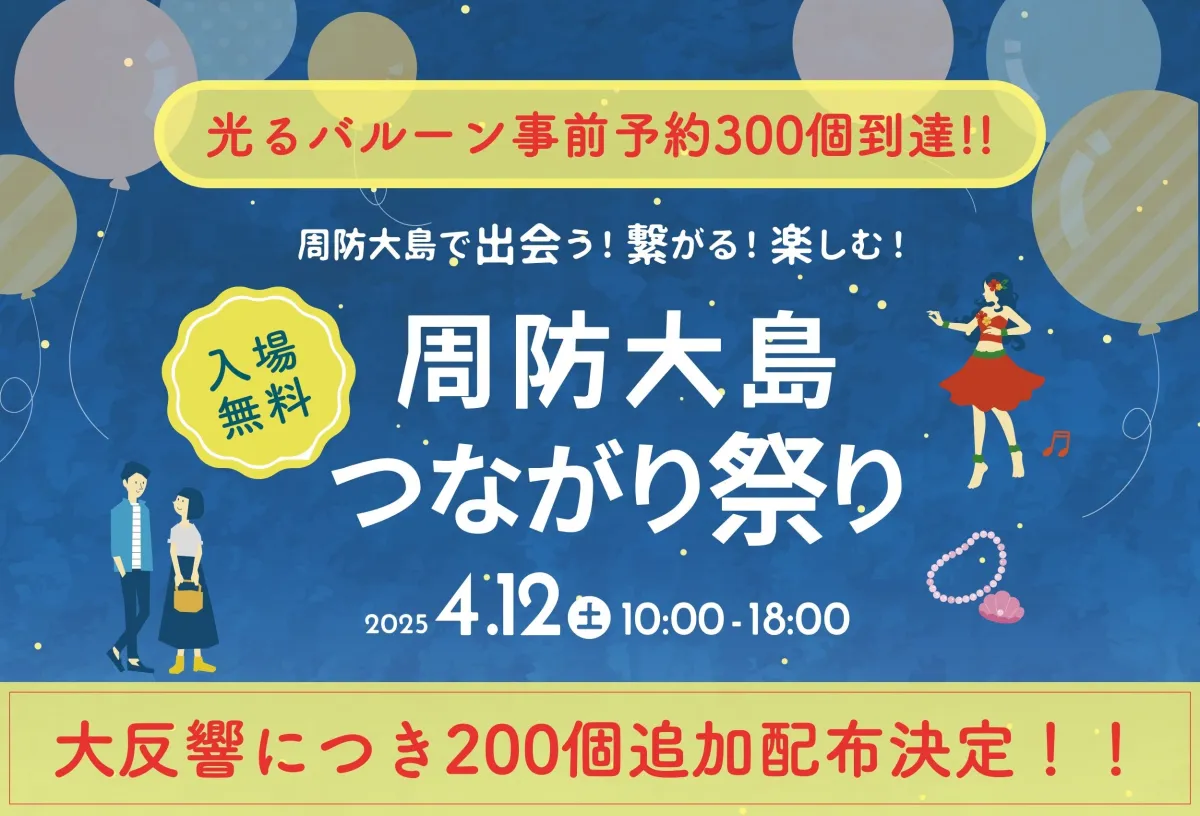2025年4月12日(土)に山口県周防大島町で開催される「周防大島つながり祭り」。このイベントでは、光る風船が無料で配布されることが発表されています。初めての事前予約を受付開始からわずか1日で300個分が完売したことを受けて、主催者である株式会社ファーストイノベーションは、急遽200個の追加分を決定しました。