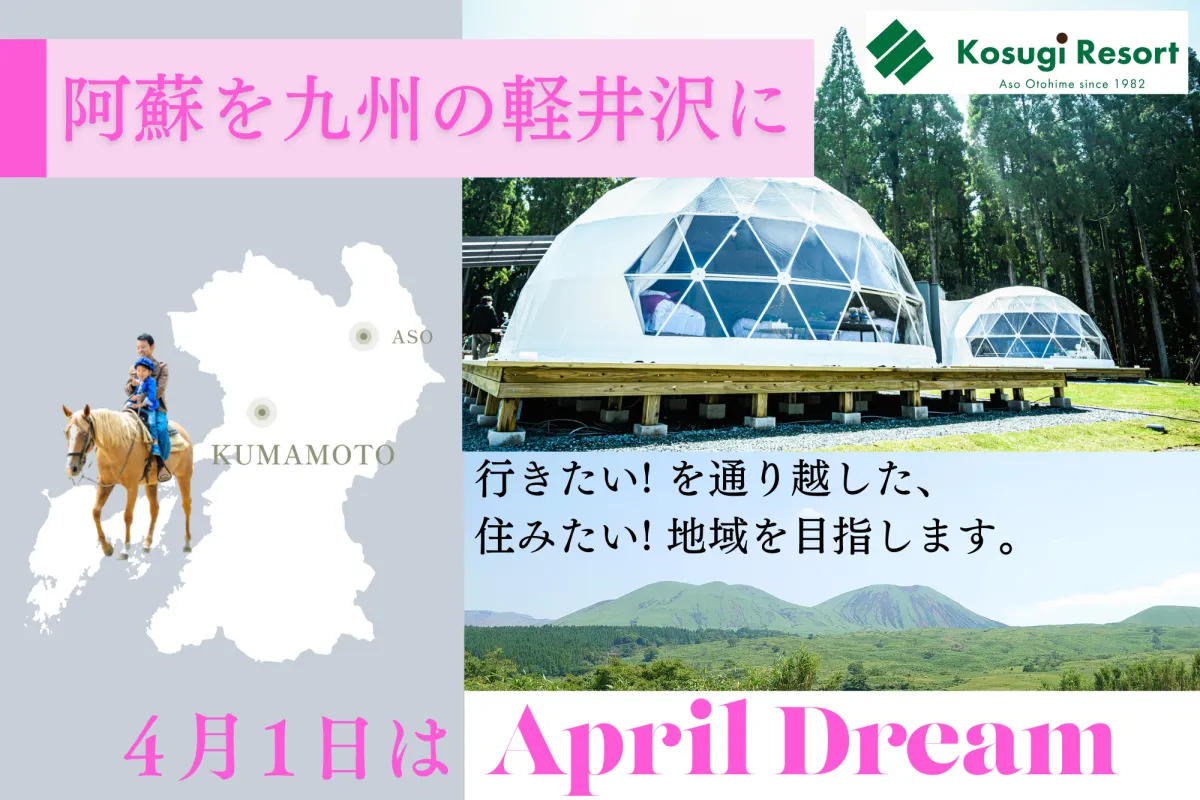 私たちの目指す「April Dream」は、企業が抱く未来へのビジョンを発信するプロジェクトです。この夢の実現を真剣に目指しています。阿蘇の新しい魅力を一緒に体験してみませんか?