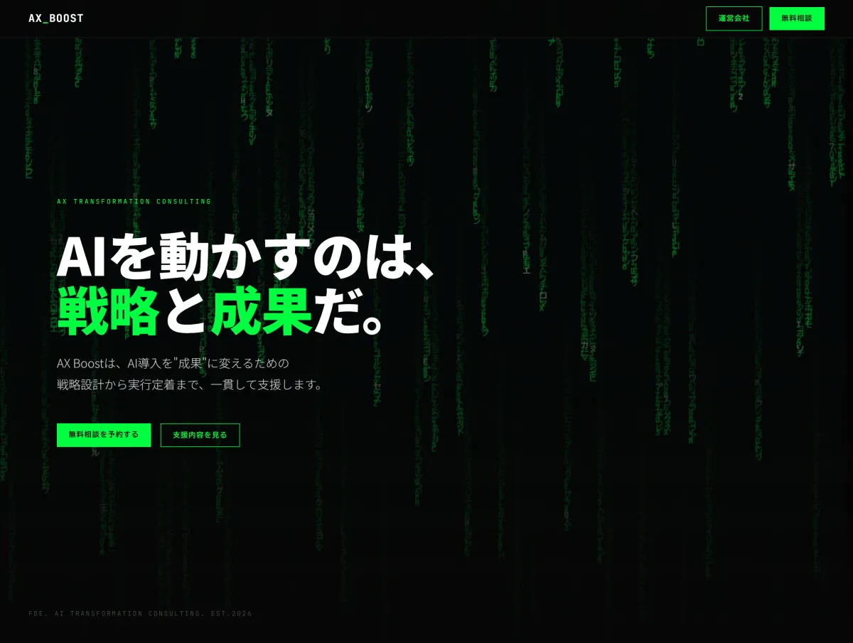 株式会社KI Strategy(本社:東京都港区)は、AI(人工知能)導入をサポートする新サービス「AX Boost(AXブースト)」を発表しました。このコンサルティングサービスは、AIを実際の業務成果に結びつけることを目指しており、業界に新たな風を吹き込む存在となることが期待されています。