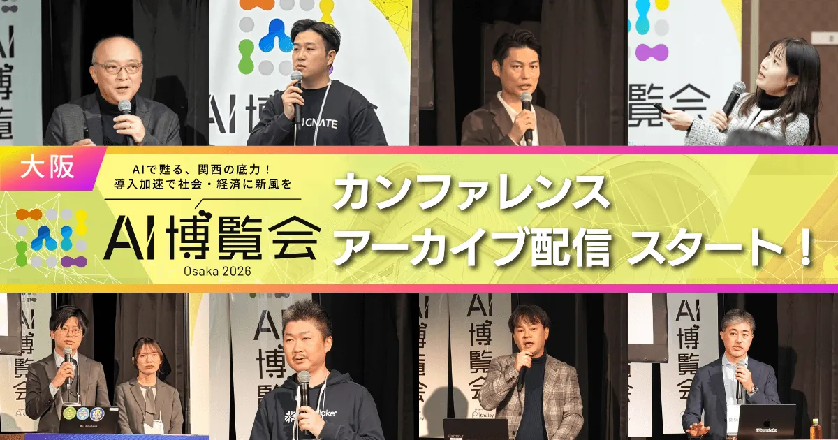 国内最大規模のAIポータルメディア「AIsmiley」を運営している株式会社アイスマイリーが、2026年1月21日と22日に開催された「AI博覧会 Osaka 2026」のカンファレンスについてのアーカイブ配信を、4月27日からスタートしました。ここでは、関西地区におけるデジタルトランスフォーメーション(DX)の加速を目指し、AI技術を活用するための最前線を体験できる貴重なコンテンツが揃っています。