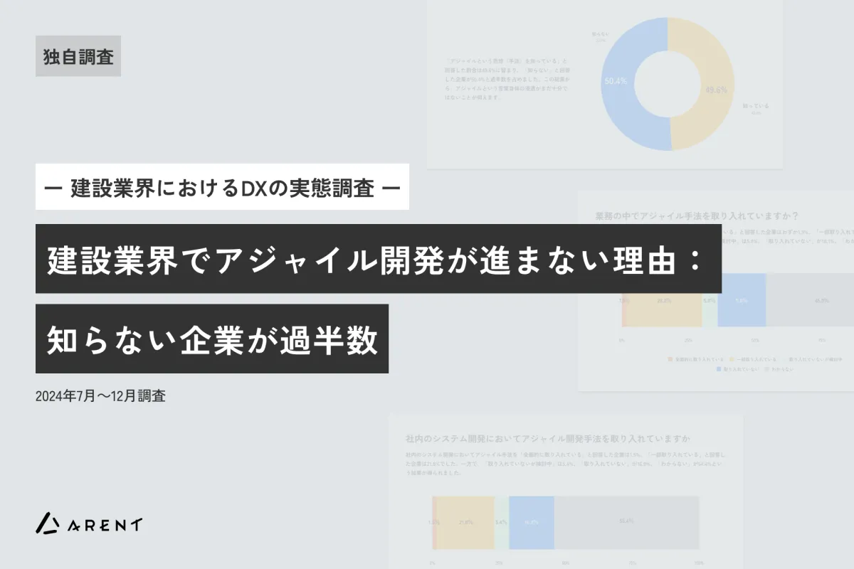 株式会社Arent(東京都港区、代表取締役社長:鴨林広軌)は、2024年7月から12月にかけて建設業界のアジャイル開発に関するセミナーや展示会を通じて、業界内の認知度や活用状況を調査しました。その結果、アジャイル開発手法の知名度に大きなギャップがあることがわかりました。一部の企業ではアジャイル手法を導入する動きが見受けられますが、多くの企業は依然として導入に慎重です。これは認知と実践の間に明確な壁が存在することを示しています。