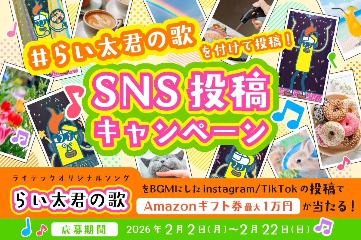 株式会社ライテックが、公式キャラクター『らい太君』の楽曲を利用した新たなSNSキャンペーン『#らい太君の歌』を発表しました。このキャンペーンは、2026年2月2日から2026年2月22日までの期間中、InstagramやTikTokに楽曲を使用した動画を投稿するという楽しい内容です。