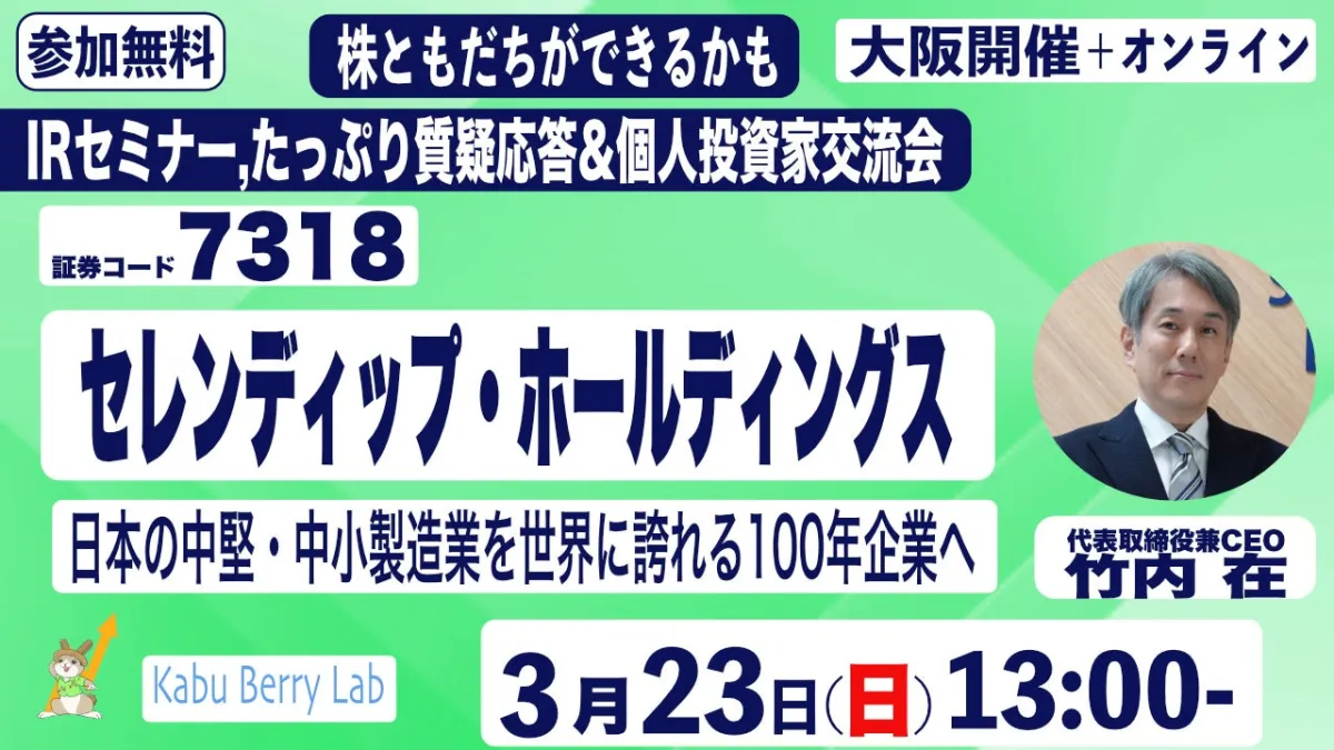 Wiki3: 大阪府 大阪市 IRセミナー Kabu Berry セレンディップ・ホールディングス