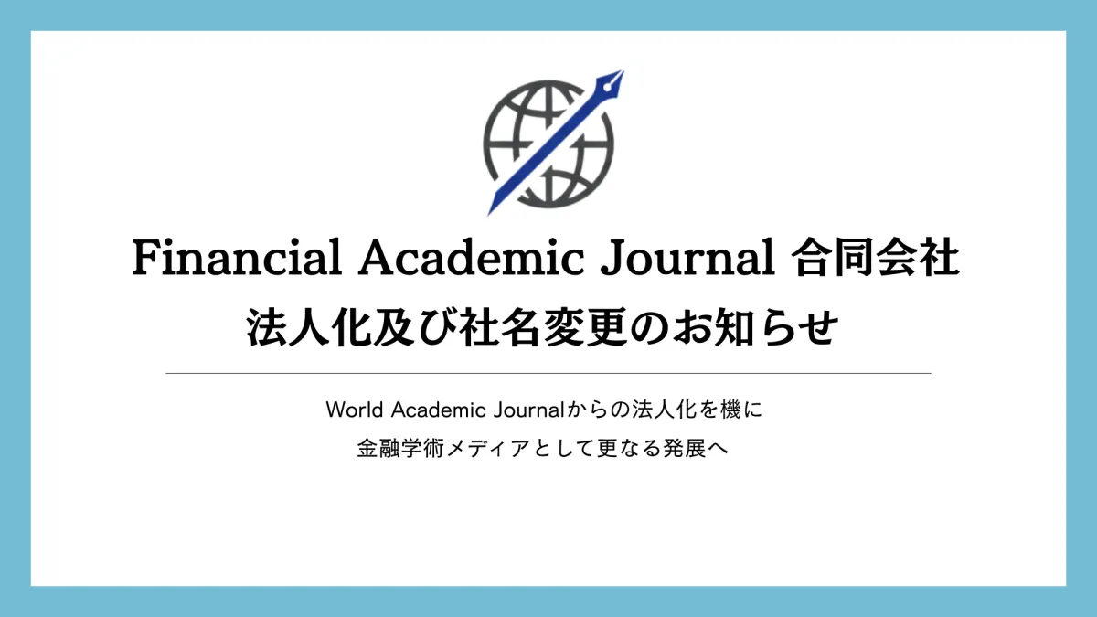 Financial Academic Journalは、2022年に個人運営の「World Academic Journal」として始まりました。主に経済、金融、経営の第一線で活躍する研究者へのインタビューや情報配信を行い、金融機関のウェブサイトの監修も手掛けてきました。しかし、事業の拡大に伴い、より強固な組織基盤と社会的信頼性の向上が求められたため、法人化を実施しました。これにより、金融分野の学術メディアとしての位置づけを明確にし、社名を「Financial Academic Journal 合同会社」と変更したのです。