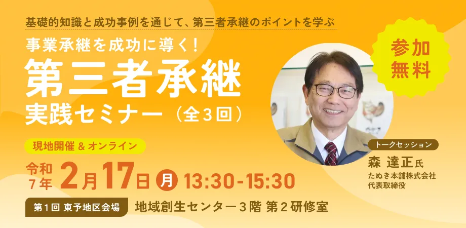 円滑な事業承継を実現するためには、事前の計画が不可欠です。セミナーに参加することで、事業の未来をつなぐための選択肢を考える良い機会となります。