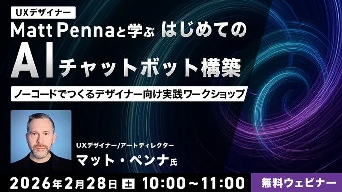 株式会社クリーク・アンド・リバー社は、2026年2月28日(土)に、UXデザインを学びたいデザイナー向けの無料オンラインセミナーを開催します。その名も「UXデザイナー Matt Pennaと学ぶ はじめてのAIチャットボット構築 ~ノーコードでつくるデザイナー向け実践ワークショップ~」。