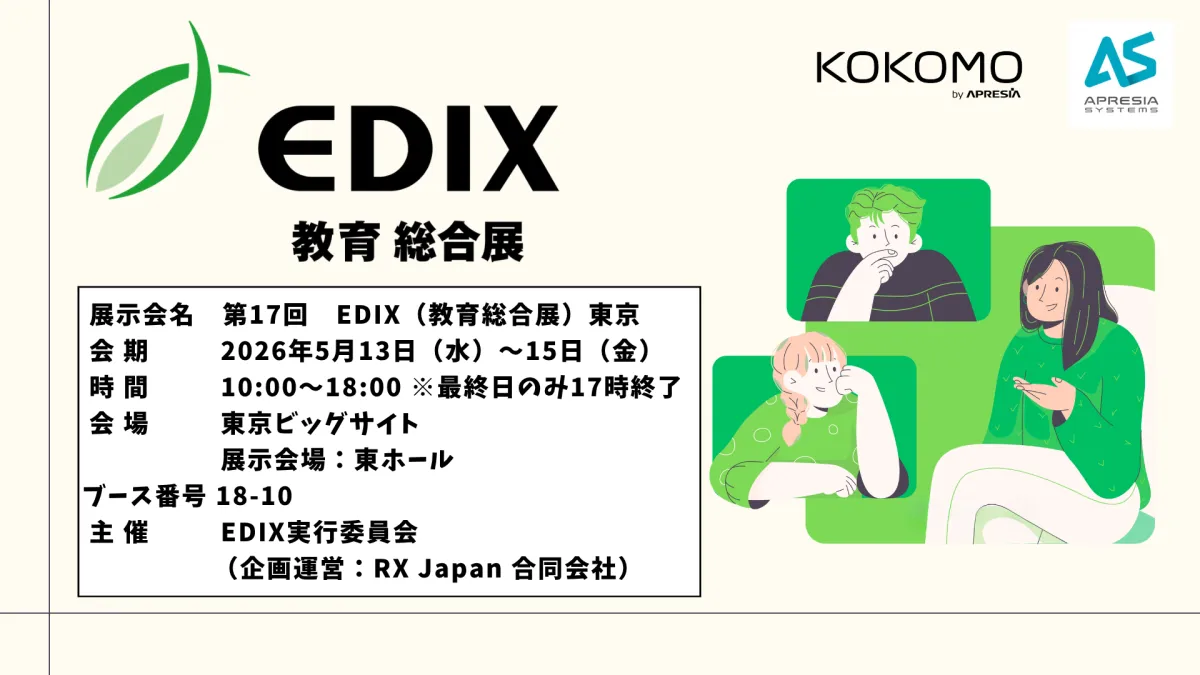 2026年5月13日から15日の3日間、東京ビッグサイトにて開催される第17回EDIX(教育総合展)東京に、APRESIA Systems株式会社が出展します。この展示会では、現代のGIGAスクール環境において直面するICT運用課題を解決するための新たなソリューションを紹介します。