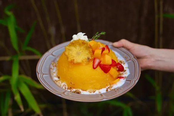 芳醇な果肉とソースに、ココナッツミルクソースや求肥をトッピング。ジャスミンティーと南国果実の香りが楽しめる、オリエンタルな一杯です。Instagram: