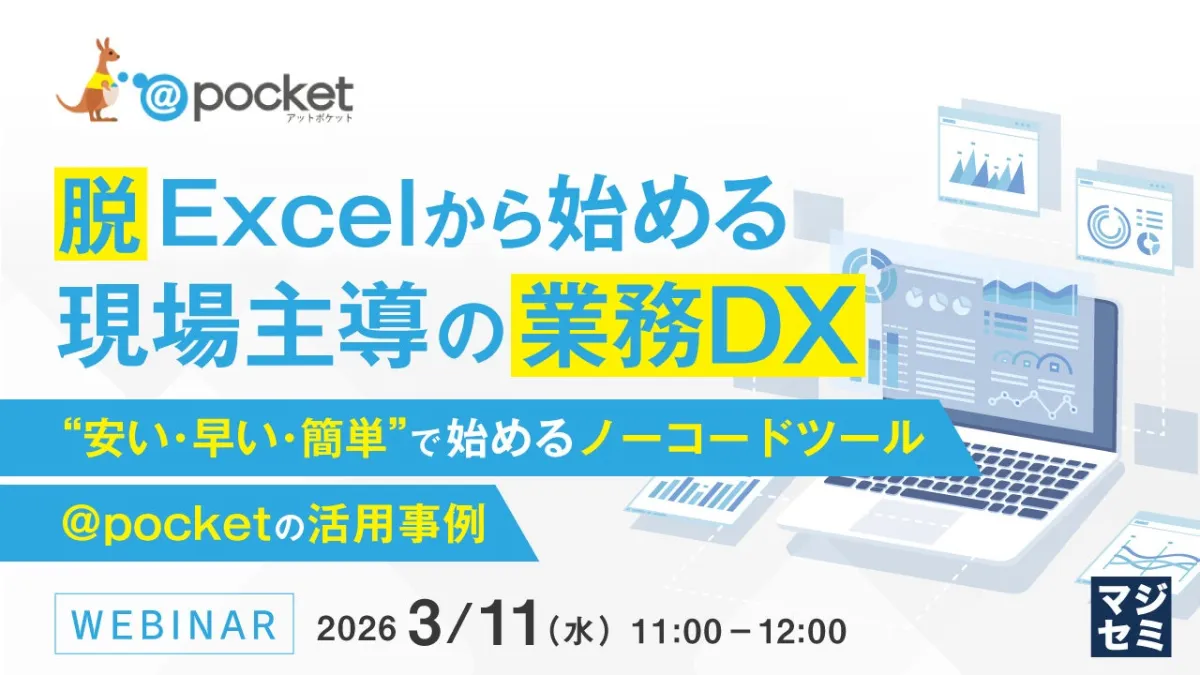 本ウェビナーでは、ノーコードツール『@pocket』を利用した業務改善の実例やデモンストレーションが紹介される。参加者は、実際に他社がどのように業務を改善しているのかを知ることができ、以下のような悩みを抱える方には特に役立つ内容が詰め込まれている。