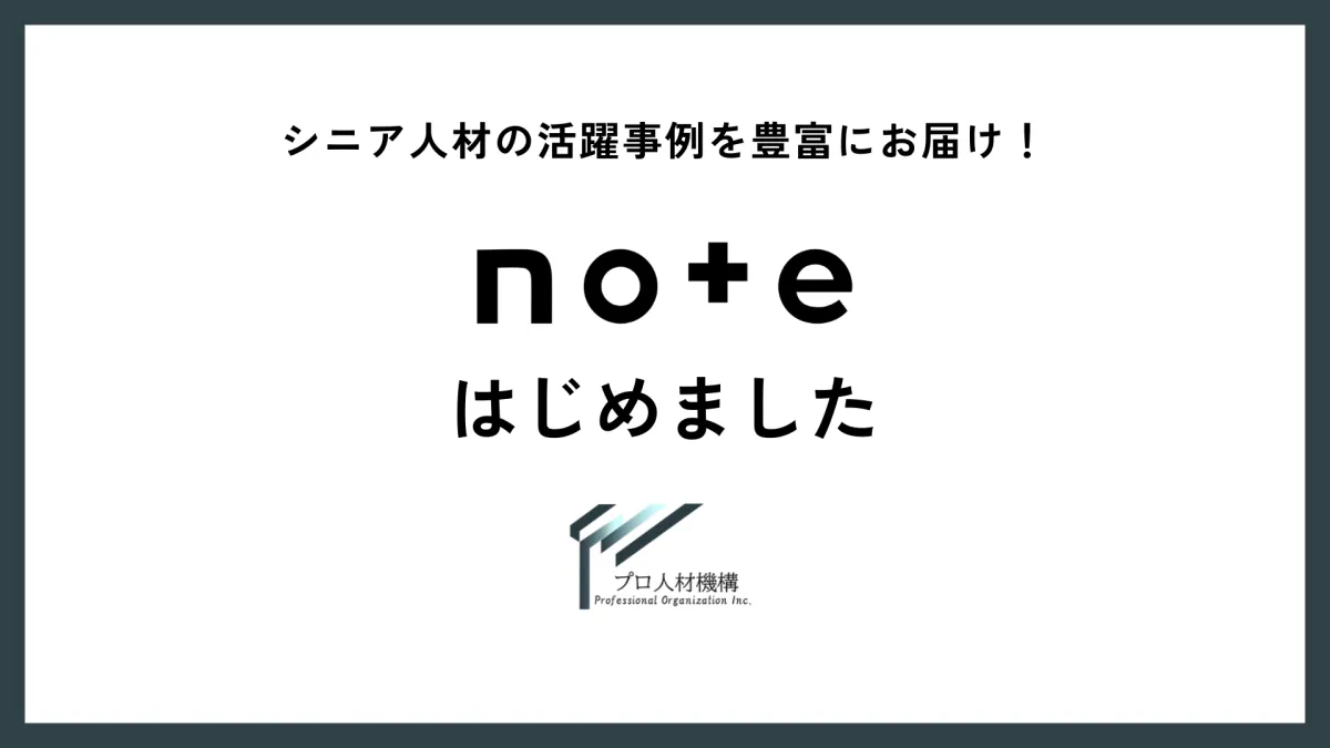 しかし、現実にはシニア層が活躍する事例に触れる機会が少なく、雇用者や企業側がその重要性を認識するための情報源は限られています。そこで、プロ人材機構は多くのシニアと日常的に関わる中で、彼らの成功事例を可視化することを目指し、公式noteの開設に至りました。