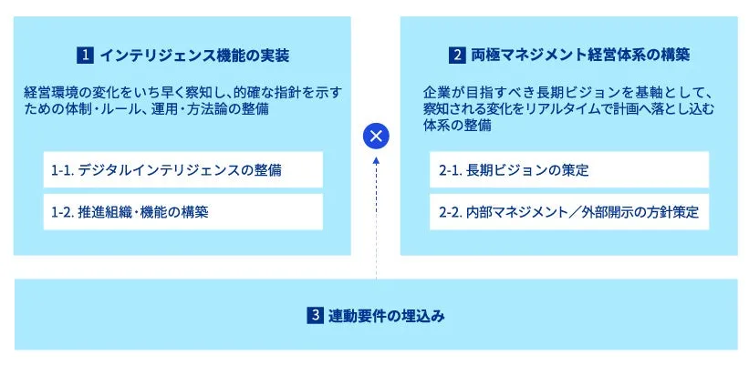長期的なビジョンの策定と同時に、短期的な環境変化を適切に把握することを目指します。これによって、企業は予測困難な経営環境の中でも持続可能な経営を実現することができます。