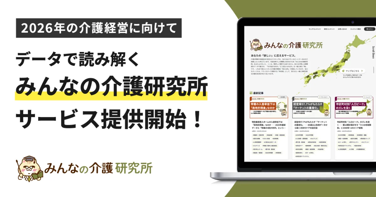 『みんなの介護研究所』は、介護現場や市場の変化をデータで整理し、わかりやすく可視化するプラットフォームです。単なる情報提供ではなく、実際の介護現場で直面している課題をデータで裏付ける方法を探求しています。
