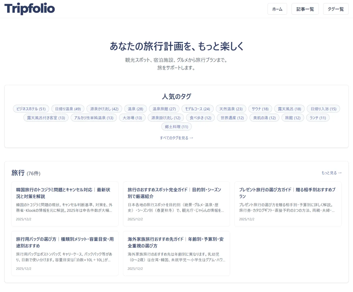 - - サイト名:Tripfolio(トリップフォリオ)