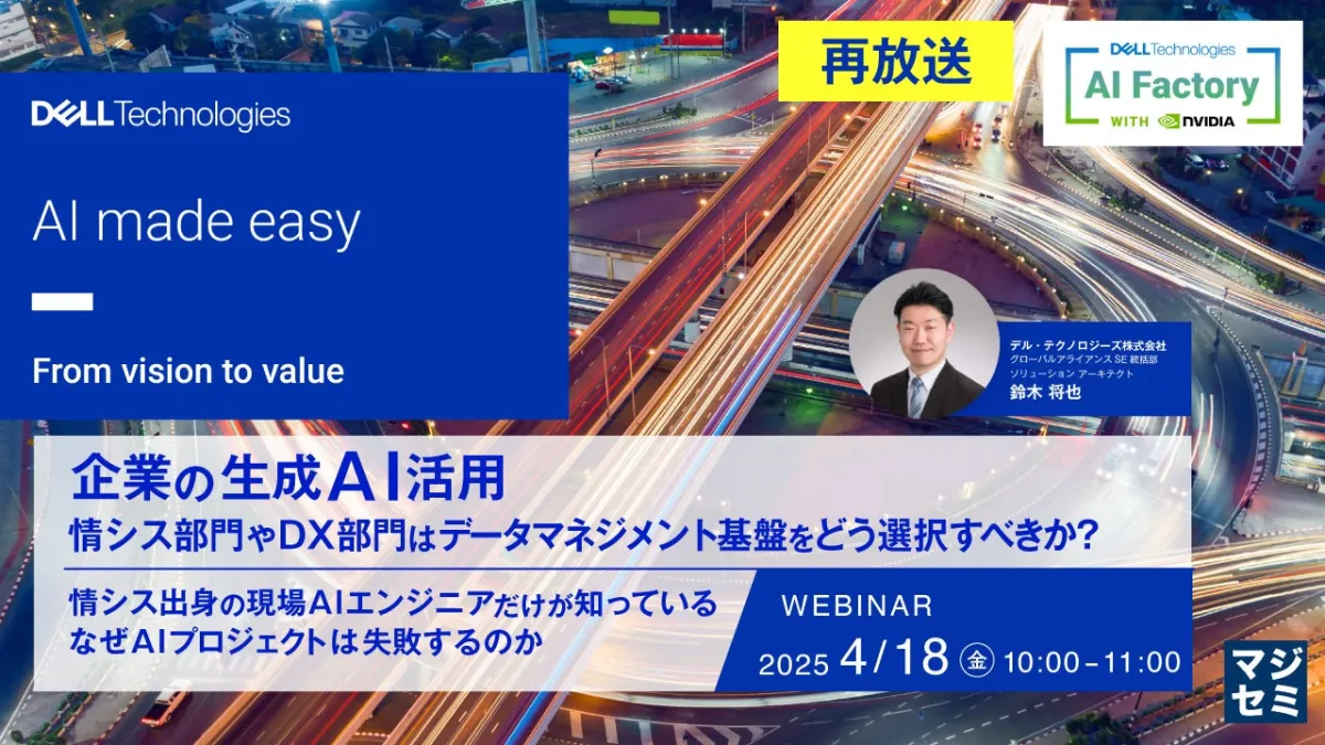 このウェビナーは、デル・テクノロジーズ株式会社が主催し、エヌビディア合同会社が協賛、さらに株式会社オープンソース活用研究所とマジセミ株式会社が協力しています。情報技術や生成AIに興味がある方は、この絶好の機会をお見逃しなく。