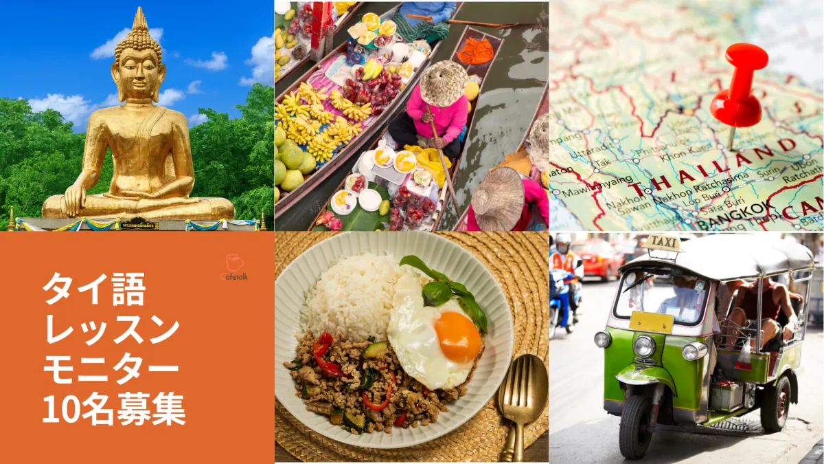 このモニター企画では、カフェトークの「オンラインタイ語レッスン」に興味がある方を対象に募集を行います。当選した方は、自分の好きなレッスンを選び、無料で2回受講ができるチケットを手に入れることができます。さらに、受講後に口コミを投稿することで、もう1回の無料受講ができる特典が付くのです。
