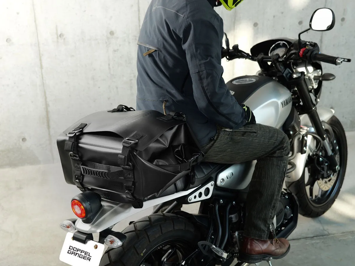 ライダーがツーリング中に直面する問題の一つが、突然の雨やバッグの汚れです。DOPPELGANGERはこれらの悩みを解決すべく、日帰り用に特化したシートバッグを開発しました。防水素材「ターポリン」を使用し、縫い目のないシームレスな設計によって、雨水の侵入をしっかりと防ぎます。これにより、レインカバーを持ち歩く煩わしさからも解放されます。