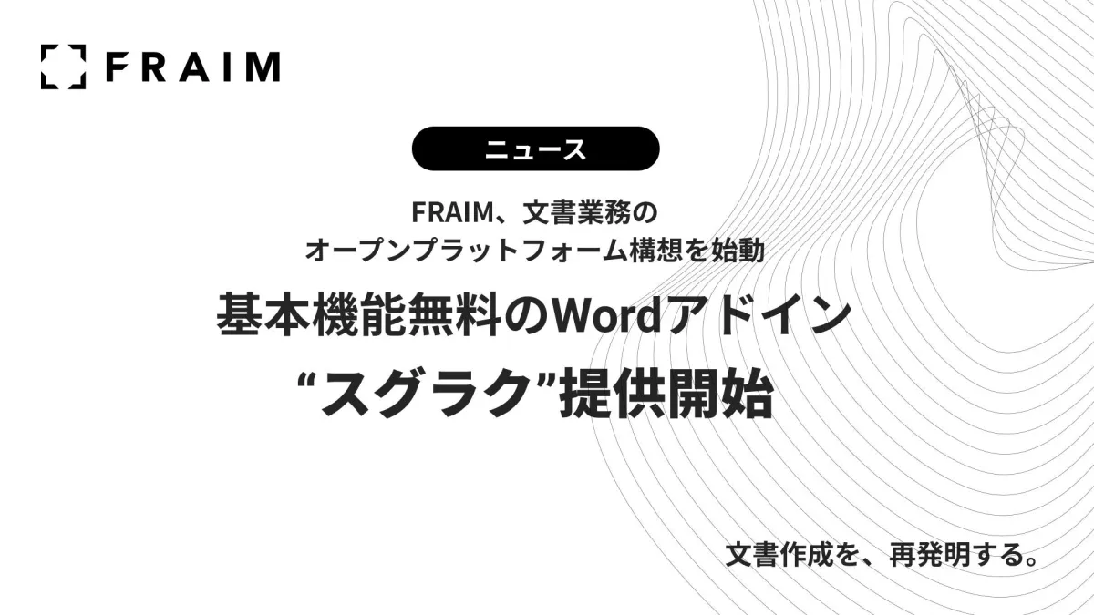 FRAIM株式会社は、文書業務を根本から見直すための新たな取り組みとして、オープンプラットフォーム構想を始動しました。特に注目されるのが、基本機能を無料で提供するMicrosoft Wordアドイン『スグラク』です。このサービスは2026年4月7日から利用可能となり、従来は導入が難しかった文書業務支援ツールを、誰でも手軽に使える形で提供します。