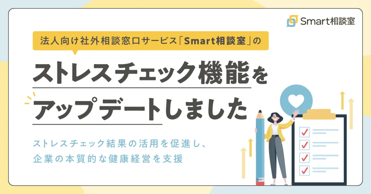 株式会社Smart相談室が提供する法人向け社外相談窓口サービス「Smart相談室」は、ストレスチェック機能を新たにアップデートしました。これにより、従業員のメンタルヘルスをより効果的に管理する手段が強化され、企業全体の健康経営を推進することが期待されています。