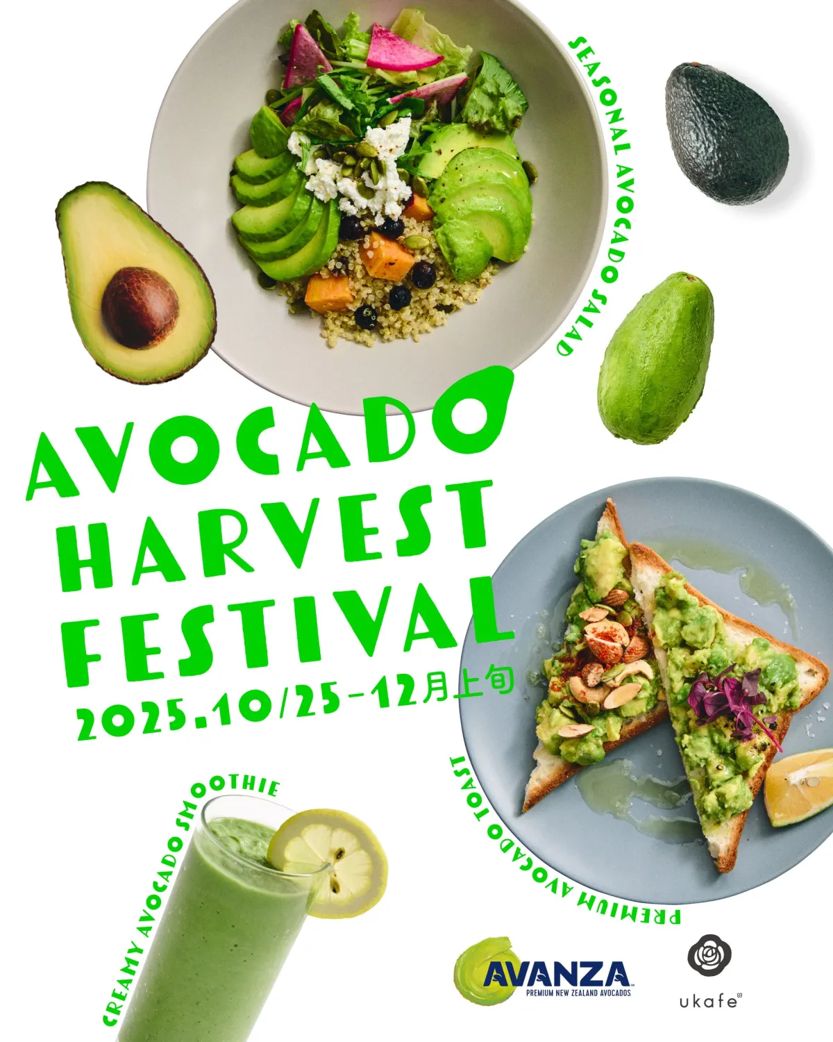 2025年10月25日(土)から、トータルビューティカンパニーukaが運営するカフェ「ukafe」で、待望のアボカド収穫祭がスタートします!今年もニュージーランドからやってきたプレミアムアボカド「アバンザ」を使った、季節限定メニューが登場します。