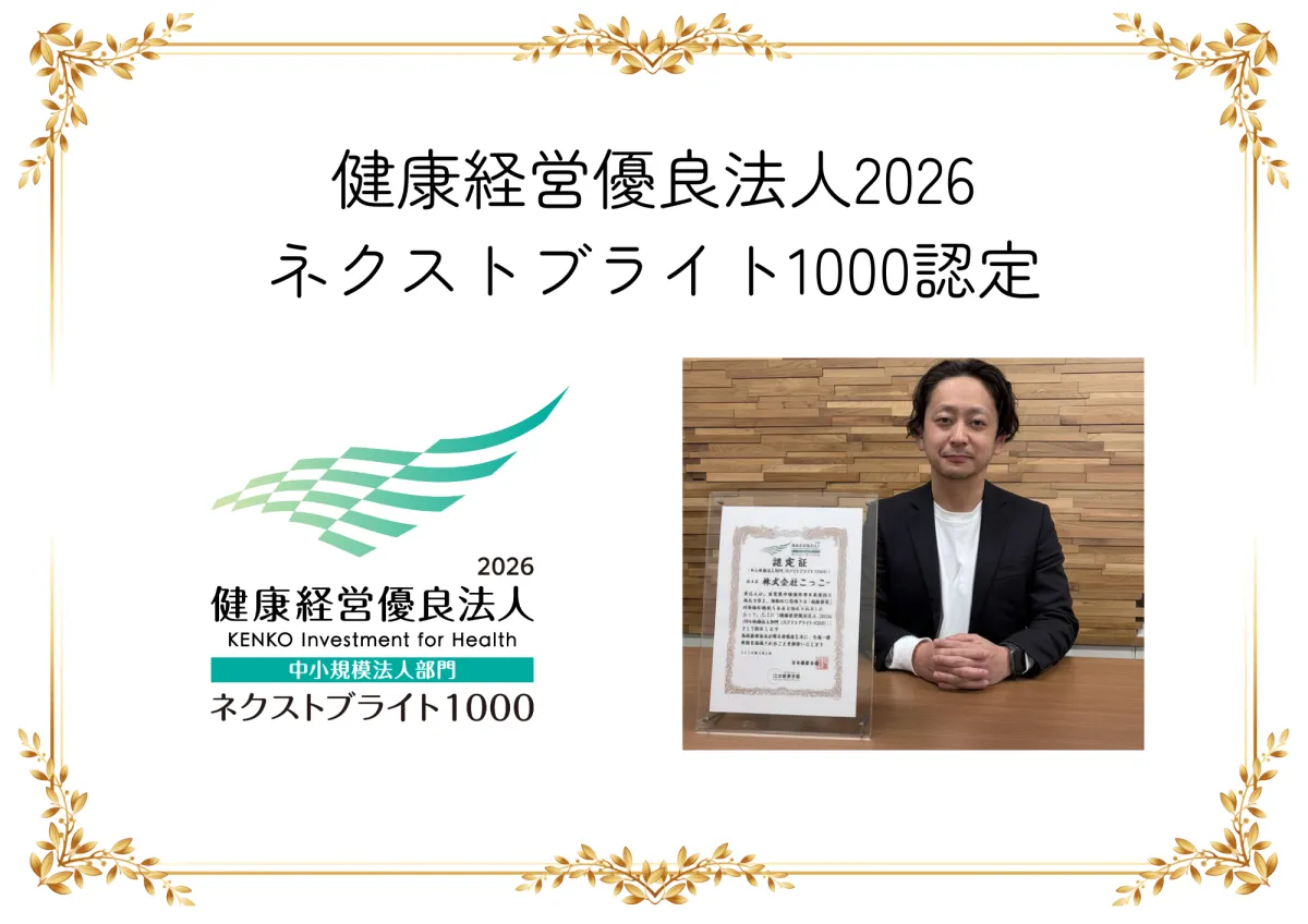 「社員の健康」と「働きやすい環境」の追求は、お客様へのサービス向上や地域への貢献の原動力であると信じています。持続可能な社会の実現に寄与し、組織として進化し続ける株式会社こっこーの挑戦に今後もご期待ください。