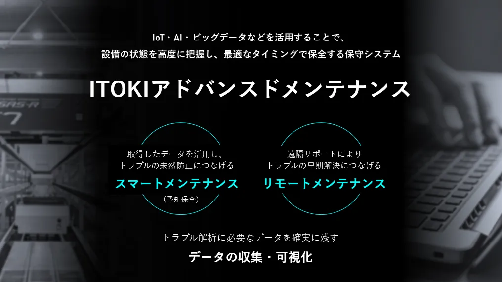 しかし、自動化が進んでいる物流現場においても突発的な設備停止は大きなリスクであり、イトーキはこのリスクを軽減するために「スマートメンテナンス」を開発。これにより、施設の稼働状況を AI が解析し、故障の兆候を事前に検出する体制を整えました。現場へ赴かずとも状況を把握できる「リモートメンテナンス」も併せて提供され、物流業界への安定運用の実現を目指します。