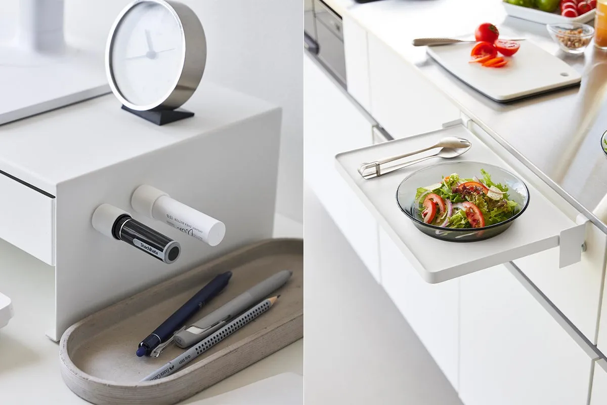この引っ掛け式の折り畳み棚は、キッチンや洗面台、さらにはデスク周りでも大活躍。必要なときにサッと広げて使えるので、調理準備や化粧品、資料などをちょっとしたスペースに整理できる一品です。使用しないときは折り畳んでスリムに収納でき、非常にコンパクト。使う場所を選ばず、どんなシーンでも役立ちます。