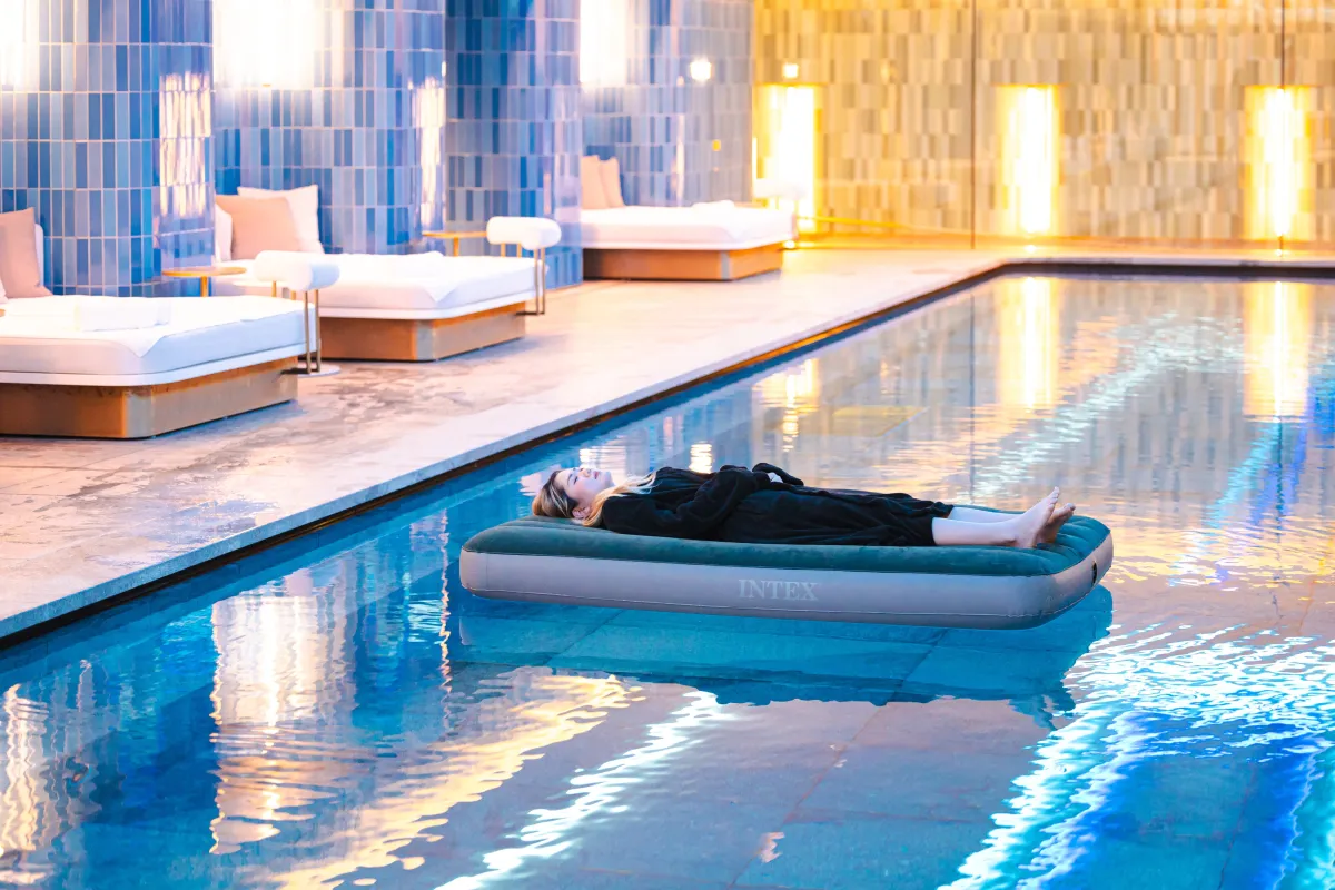 W大阪の「WET」エリアは、室内プールやサウナ、ジャグジーといったリラクゼーション空間が整っています。ここで行われるフローティング・サウンド・バスセッションは、日常の忙しさから解放され、心地よいリラクゼーションへと導かれます。インストラクターのMAYUが、呼吸法や軽い瞑想を通じて参加者を優しく導く中、水面の揺らぎとクリスタルボウルの澄んだ音色が心を包み込みます。この幻想的なナイトセッションで、心と身体がリフレッシュされる瞬間を体験してみてはいかがでしょうか。