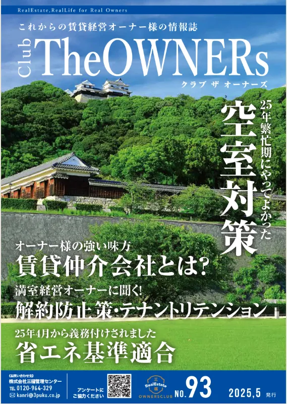 愛媛県松山市に本社を置く三福管理センターが発行する情報紙『ClubTheOWNERs』が、2025年6月からスタートします。この情報紙は、賃貸経営に関する最新のノウハウや実践的な情報を、一冊にまとめたものです。これまでの賃貸経営の繁忙期を終えた今、オーナー様向けに空室対策や解約防止、法改正に対応するための省エネ基準など、知っておくべき重要な情報を伝えていきます。