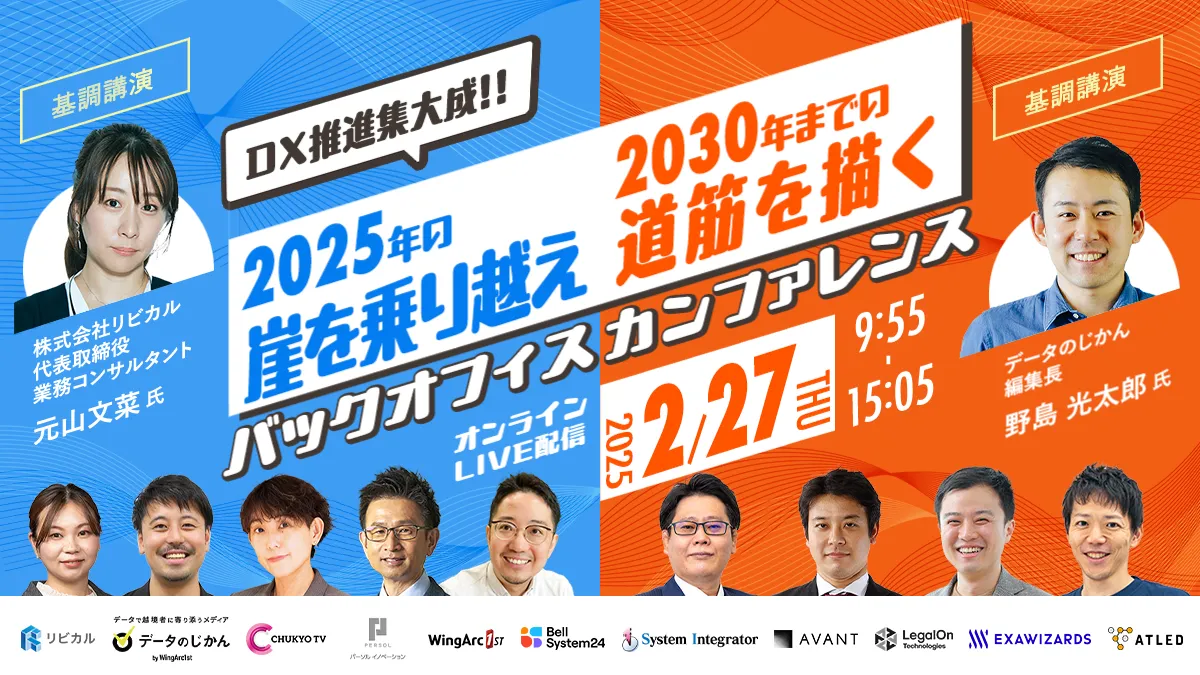 株式会社エイトレッドが、2025年2月27日(木)にオンラインで開催する「DX推進集大成!!2025年の崖を乗り越え2030年までの道筋を描くバックオフィスカンファレンス」。