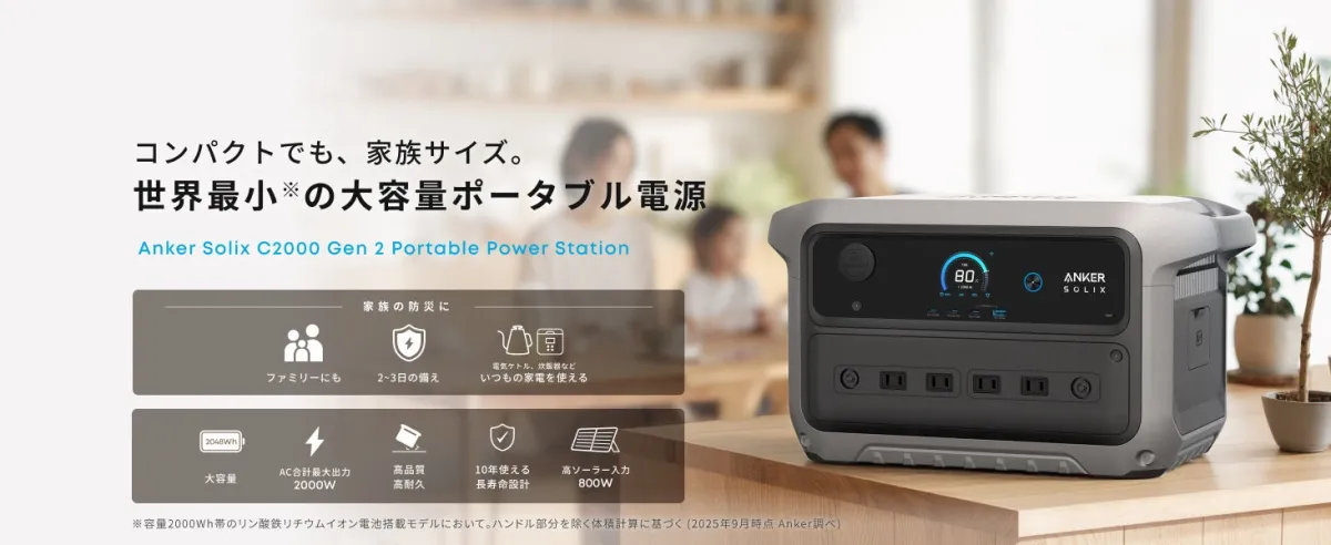 最近の自然災害の増加により、防災用品の需要が高まっています。それに応えるべく、Ankerが新たにリリースした「Anker Solix C2000 Gen 2 Portable Power Station」は、特に家族の安全を考えた最適な選択肢です。2052Whの大容量と世界最小のコンパクト設計を実現したこのポータブル電源は、まさに防災の新しいスタンダードといえるでしょう。