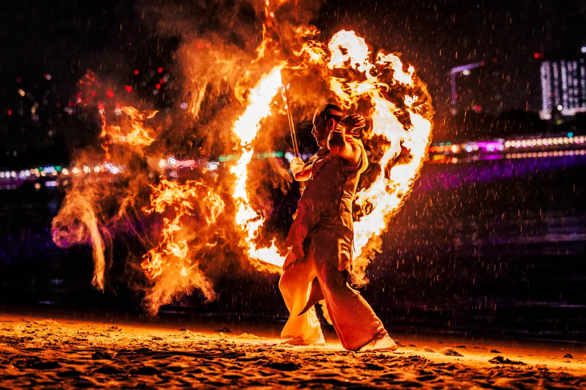 STAR ISLANDは、2017年にエイベックスが、花火と音楽、テクノロジーを融合した新しいエンターテインメントとして立ち上げました。これまでにシンガポールやサウジアラビアを含む世界各地で約11回の公演を実施し、1,500万人以上を動員してきました。その象徴であるのが、火の神「カグツチ」の名を冠する雷光炎舞「かぐづち」です。