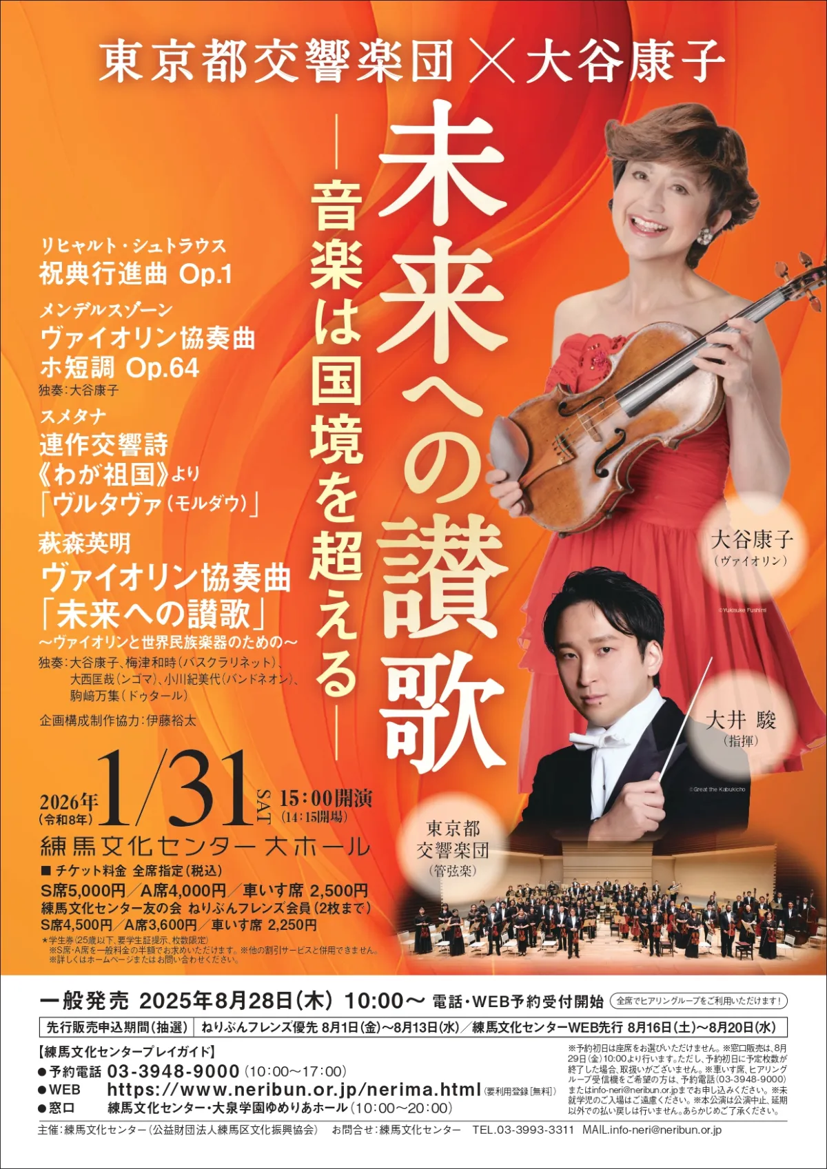 2026年1月31日、東京都練馬文化センターで開かれる特別コンサート「東京都交響楽団×大谷康子 未来への讃歌―音楽は国境を超える―」が大きな話題を呼んでいます。この公演は、現代の戦争や紛争をテーマに据えたもので、音楽の力で平和を訴えかけるものです。