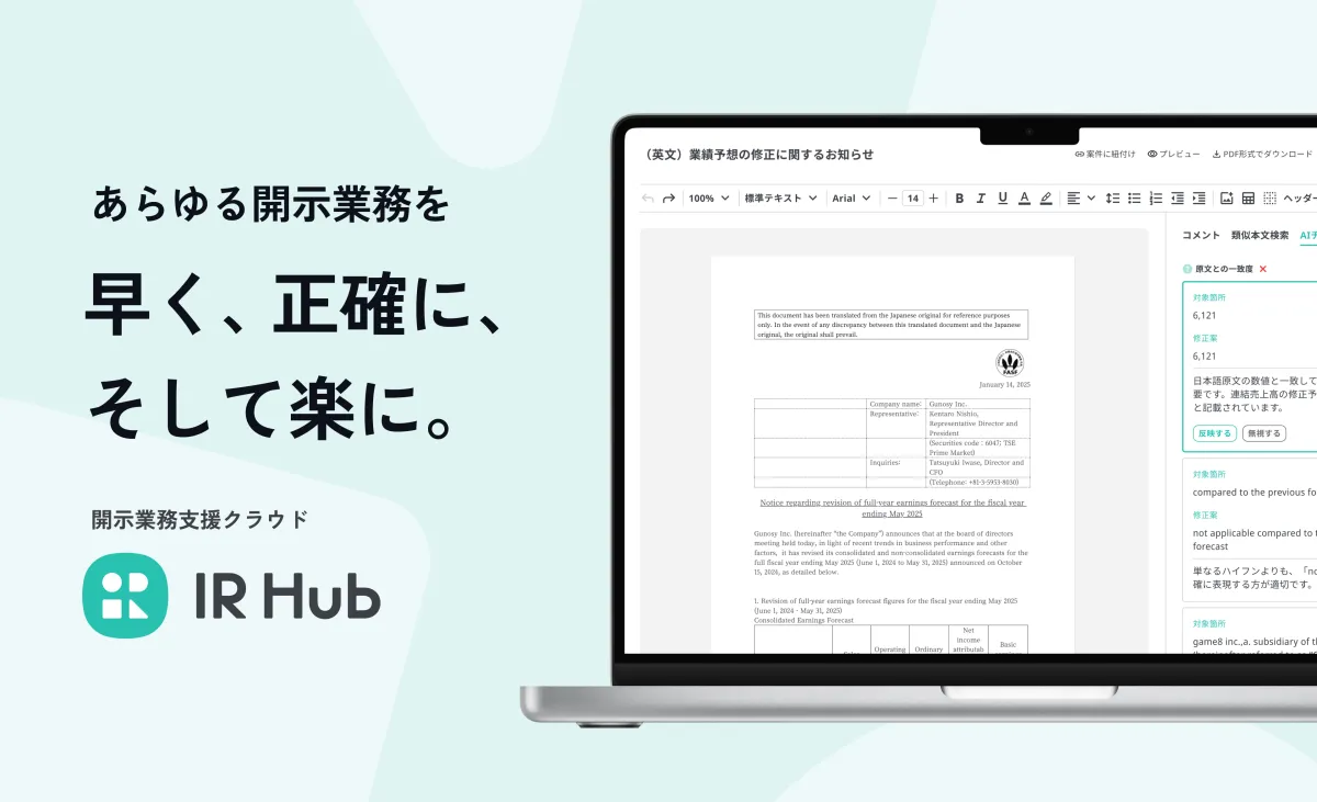 株式会社Gunosyが、東京証券取引所の規定に基づく適時開示のための新たなプラットフォーム「IR Hub」を正式にリリースしました。この取り組みは、企業が2025年4月から求められる英文開示に円滑に対応できるよう設計されています。
