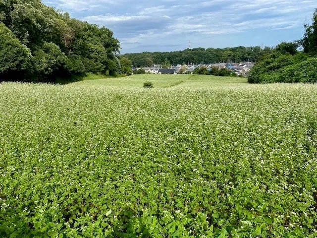 七国山周辺では、ぼたん園やふるさと農具館、そして七国山ファーマーズセンターの近くに広がる畑で、白く可憐なそばの花が草原を埋め尽くすように咲き揃います。その風景は、訪れる人々に癒しを与え、一年の中でこの時期ならではの特別な景観を生み出します。