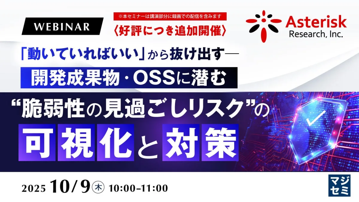 本ウェビナーは、株式会社アスタリスク・リサーチが主催し、株式会社オープンソース活用研究所、マジセミ株式会社が協力しています。