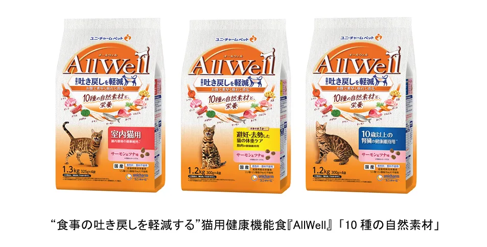 ユニ・チャーム株式会社は、ペットの健康を気遣う飼い主のために新たに猫用健康機能食『AllWell』の「10種の自然素材」シリーズを2025年3月4日に発売します。近年、多くの飼い主が愛猫を「家族の一員」として捉えるようになり、猫の健康を考えた食事を選ぶ傾向が強まっています。