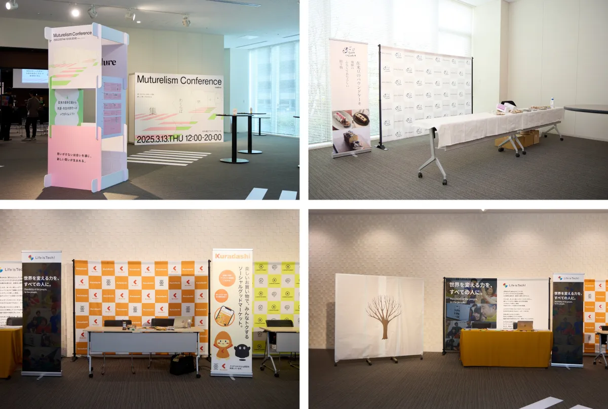 今回のプロジェクトでは、厳しい時間と予算の制約の中、各チームが明確に役割分担を行いました。Muture側は造作物の対応を担当し、弊社PXCは大型パネルやスタンドバナーなどのサイン関連の仕事を手がけました。この協力体制が成果を生み、参加者から高評価を得、イベントは盛況に終了しました。