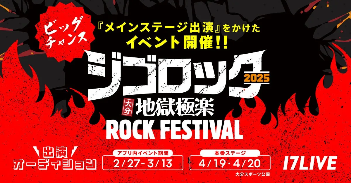 音楽愛好家にはたまらないニュースが飛び込んできました!2025年4月に大分県で開催される『ジゴロック2025~大分「地獄極楽」ROCK FESTIVAL~ supported by ニカソー』への出演者を選出するオーディションが、2025年2月27日からスタートします。このオーディションは、ライブ配信アプリ「17LIVE(イチナナ)」を通じて、気軽に音楽の道を目指すきっかけを提供するものです。