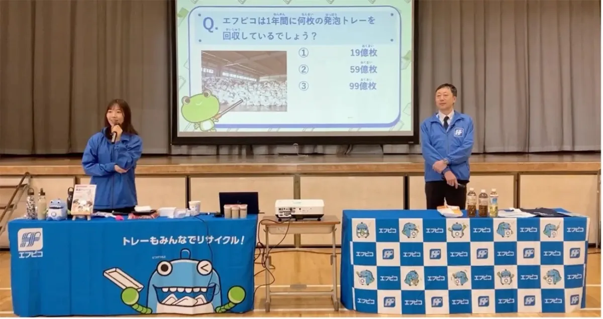 今回の授業は、4年生の約55名を対象に実施されます。授業の開始は10:30で、まずはヤオコーが中心となり、食品ロス削減に関する取り組みを紹介します。その後、エフピコが食品トレーやペットボトルのリサイクル方法についての説明を行います。