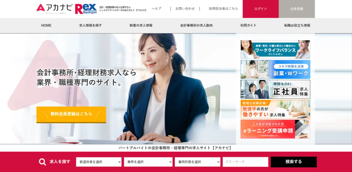 「アカナビ」は、税理士や公認会計士といった経理・会計業界の専門人材に特化した求人情報を集約するサイトです。このプラットフォームは、職を探している専門職の方々に向けて、最適な求人を見つける手助けをしています。特にパートやアルバイトの求人情報を中心に提供し、主婦やフリーランスの方々が活躍する場を広げています。