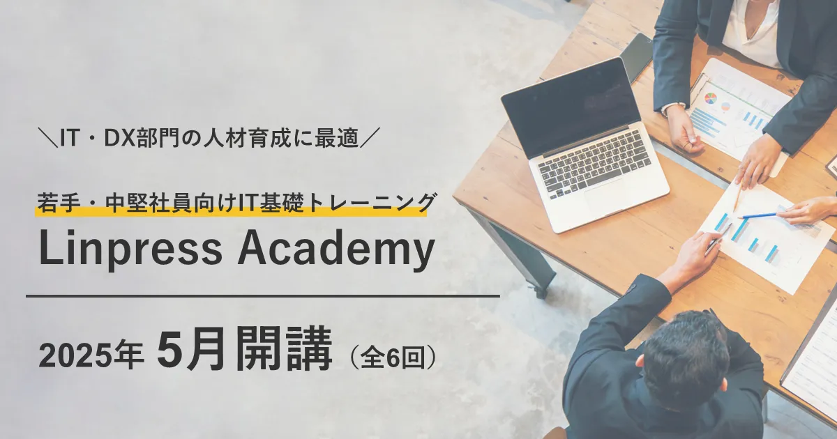 株式会社リンプレスは、2025年5月から新たなトレーニングコース「Linpress Academy」を開始します。このプログラムは、若手および中堅社員向けにデジタルおよびITの基礎を広く学べる内容で構成されています。