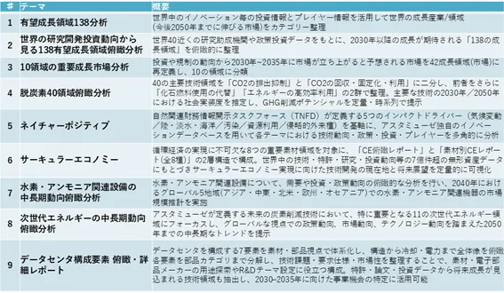このパッケージにより、企業は「何が伸びるか」「いつ伸びるか」「投資がどこに向かっているか」を把握し、未来戦略の精度を高めることが可能です。