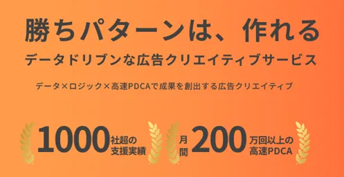 - - プロのチームによる支援: 大手広告代理店出身のクリエイティブプロフェッショナルがチームを組み、勝ちパターンの創出をサポートします。