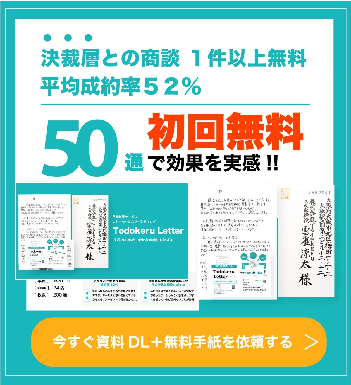 デジタル時代においても、手紙というアナログな手法が持つ強みを再認識させてくれる株式会社Todokeruの取り組み。今後、ビジネスにおける手紙の威力は再評価されていくことでしょう。「トドケルマップ」を通じて、新しい顧客へのアプローチや商談機会を創出するチャンスが広がっています。ぜひ、この機会に手紙営業を試してみてはいかがでしょうか。